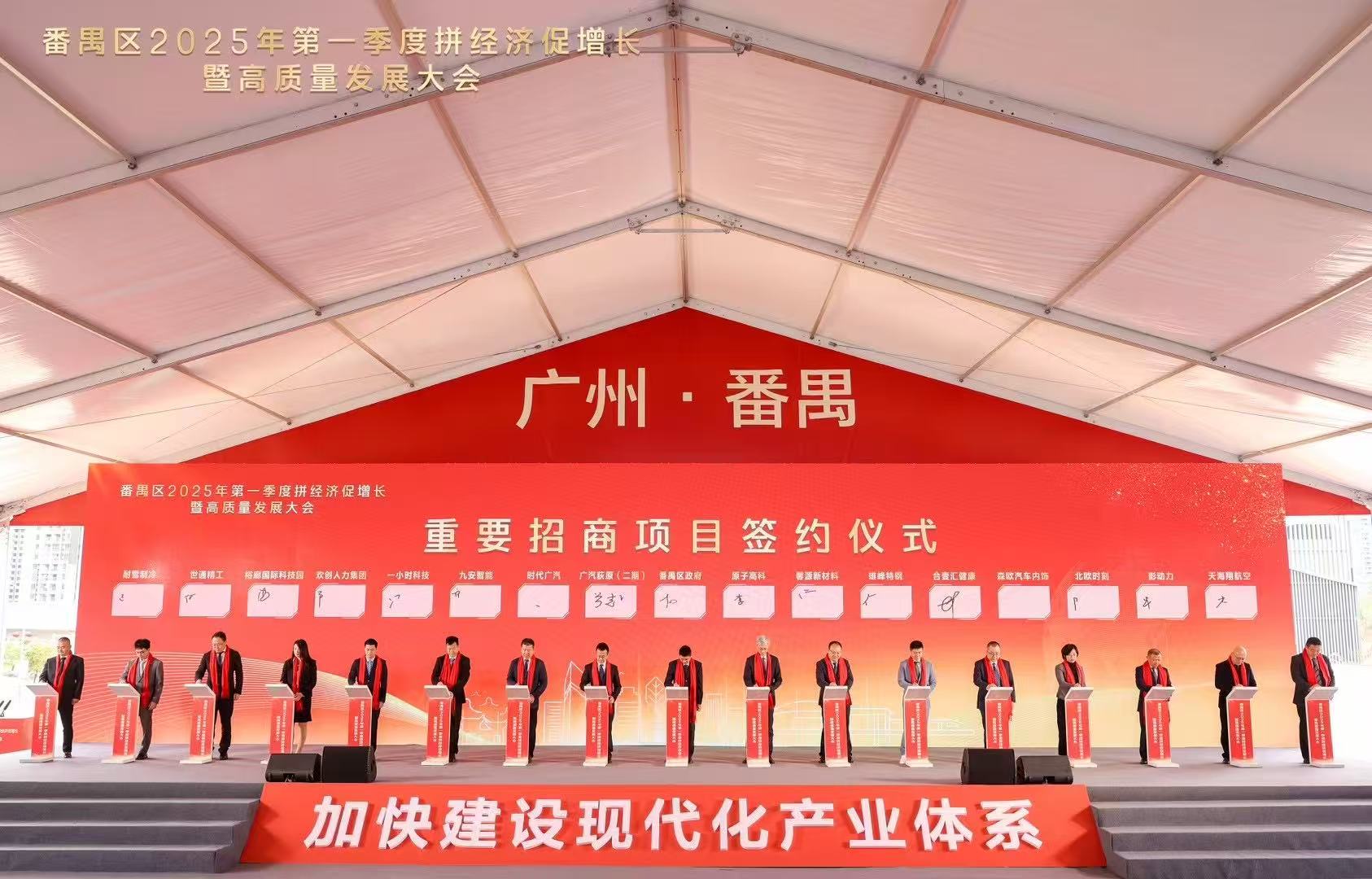 珠江潮涌千帆竞,春风浩荡万象新。2月7日,番禺区2025年第一季度拼经济促增长暨高质量发展大会召开,会议由番禺区委副书记、区长叶珊瑚主持,来自番禺区领导班子、各单位主要负责同志、民主党派负责人、镇街党政领导、企业经营者代表、各行业及商会代表,以及高校和产业经济领域的专家学者等300余位嘉宾齐聚一堂,共谋发展大计。会上举行第一季度重点项目动工、竣工、投产仪式。包括乐鱼(中国)一站式服务平台集团总部大厦项目在内的14个项目正式启动,总投资额达78亿元,项目达产后可实现年产值157亿元,年税收7.1亿元,开年即展现番禺区奋勇当先、大干实干的奋进姿态,力争以第一季度“开门红”引领高质量发展“全年胜”!