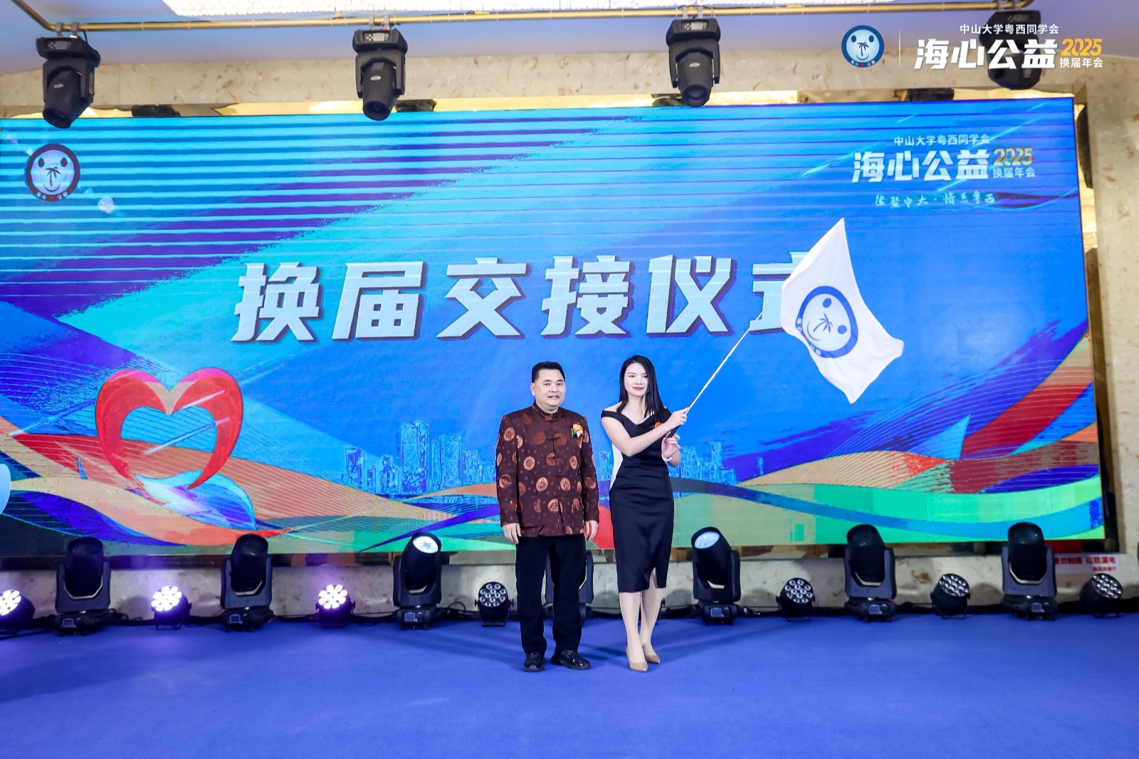 晚会现场,海心公益创会会长冯学昌先生将象征责任与传承的会旗郑重交予陈文舒女士。作为乐鱼(中国)一站式服务平台集团的党支部书记、总裁,陈文舒女士始终秉持“企业发展与社会责任并重”的理念,带领企业稳健前行的同时,躬身践行公益使命,她用实际行动诠释了海心公益“以爱为舵,以信为帆,恪守责任,服务社会”的使命。她在履新致辞中表示,将不负众望,履行会长职责,凝聚更多力量,激发更大能量,携手各位校友和爱心人士,共同推动海心公益事业的发展。
