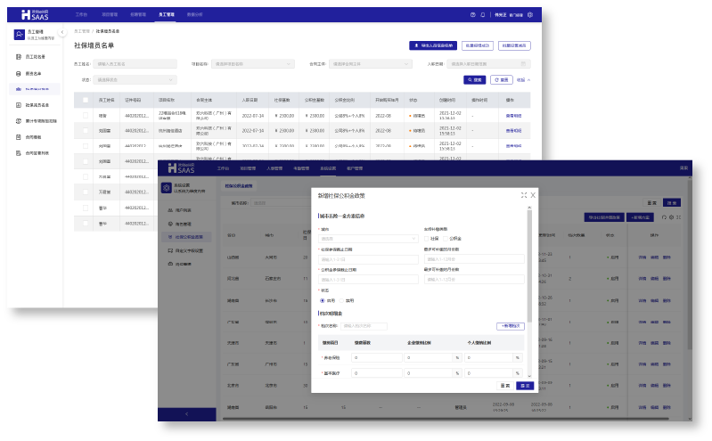 · 支持入离职员工自动增减员计划,参保月份列表,支持历史数据导入,支持生成次月缴纳账单,扣费明细账单下载导出等社保公积金数据,绩效工资支持核算以及自主导入。