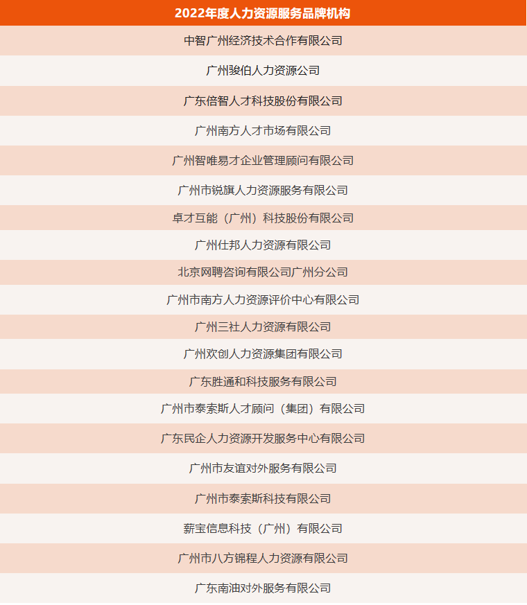 2022年度人力资源服务品牌机构、人力资源优质服务商、优秀会员单位及人力资源服务先锋人物名单